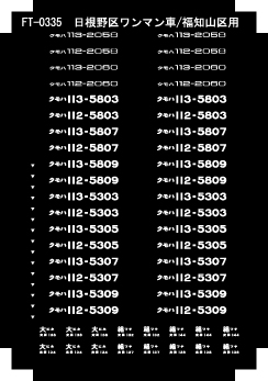 0335 車体表記インレタ 日根野区ワンマン車/福知山区車