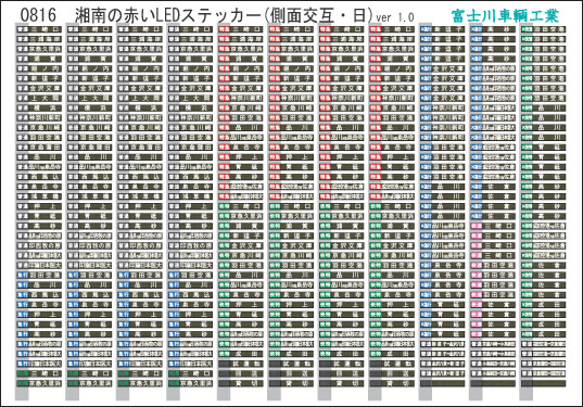 0816 方向幕・表記ステッカー 湘南の赤いLED(側面交互・日)