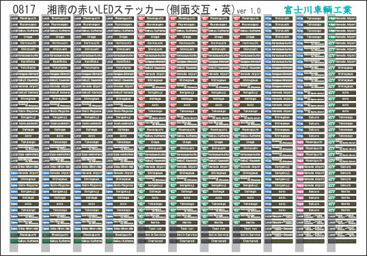 0817 方向幕・表記ステッカー 湘南の赤いLED(側面交互・英)