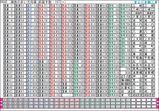 0840 方向幕・表記ステッカー 湘南の赤い方向幕(前面手動・1973~)