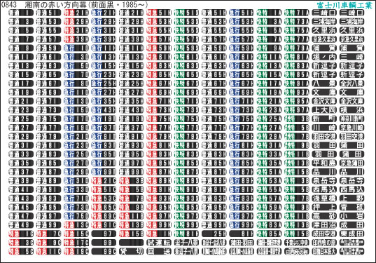 0843 方向幕・表記ステッカー 湘南の赤い方向幕(前面黒・1985~)