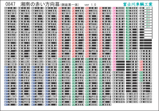 0847 方向幕・表記ステッカー 湘南の赤い方向幕(側面黒一体)