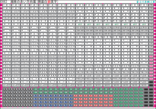 0863 方向幕・表記ステッカー 湘南の赤い方向幕(側面白細英字)