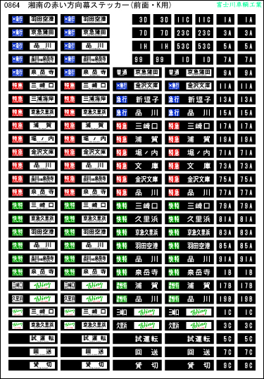 0864 方向幕・表記ステッカー 湘南の赤い方向幕(前面・K用)