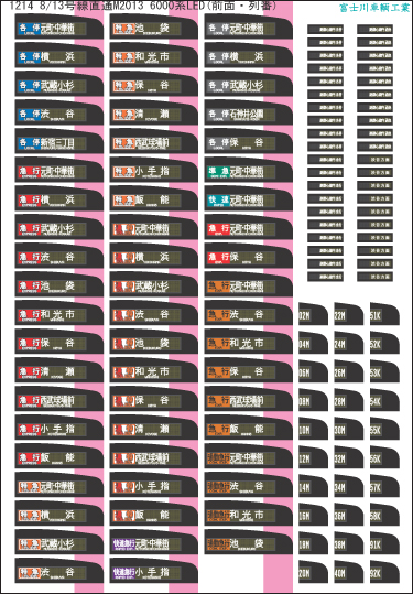 GM製6000系用、2013年以降の東横関連前面営業表示と休日急行/通勤急行のROM変更