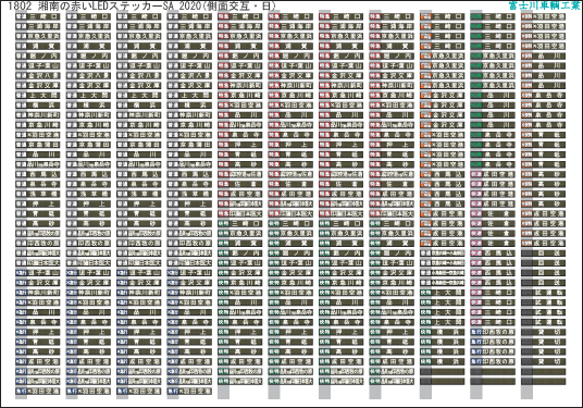 1802 方向幕・表記ステッカー 湘南の赤いLED SA2020(側面交互・日)